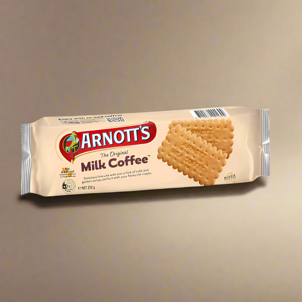Milk Coffee biscuits are an Arnott's original and has been a staple of Aussie pantries for decades. As its name suggests, this Aussie biscuit goes great with hot and cold beverages. A great dipping biscuit for those that enjoy their biscuits on the softer and mushier side.