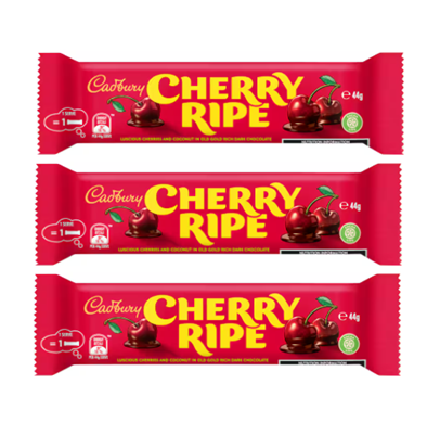 Enjoy the Big Cherry Taste! The ripe juicy cherries and moist coconut smothered in Old Gold rich dark chocolate ensure a unique and delicious taste. Cadbury Cherry Ripe offers an indulgent and rich treat.
